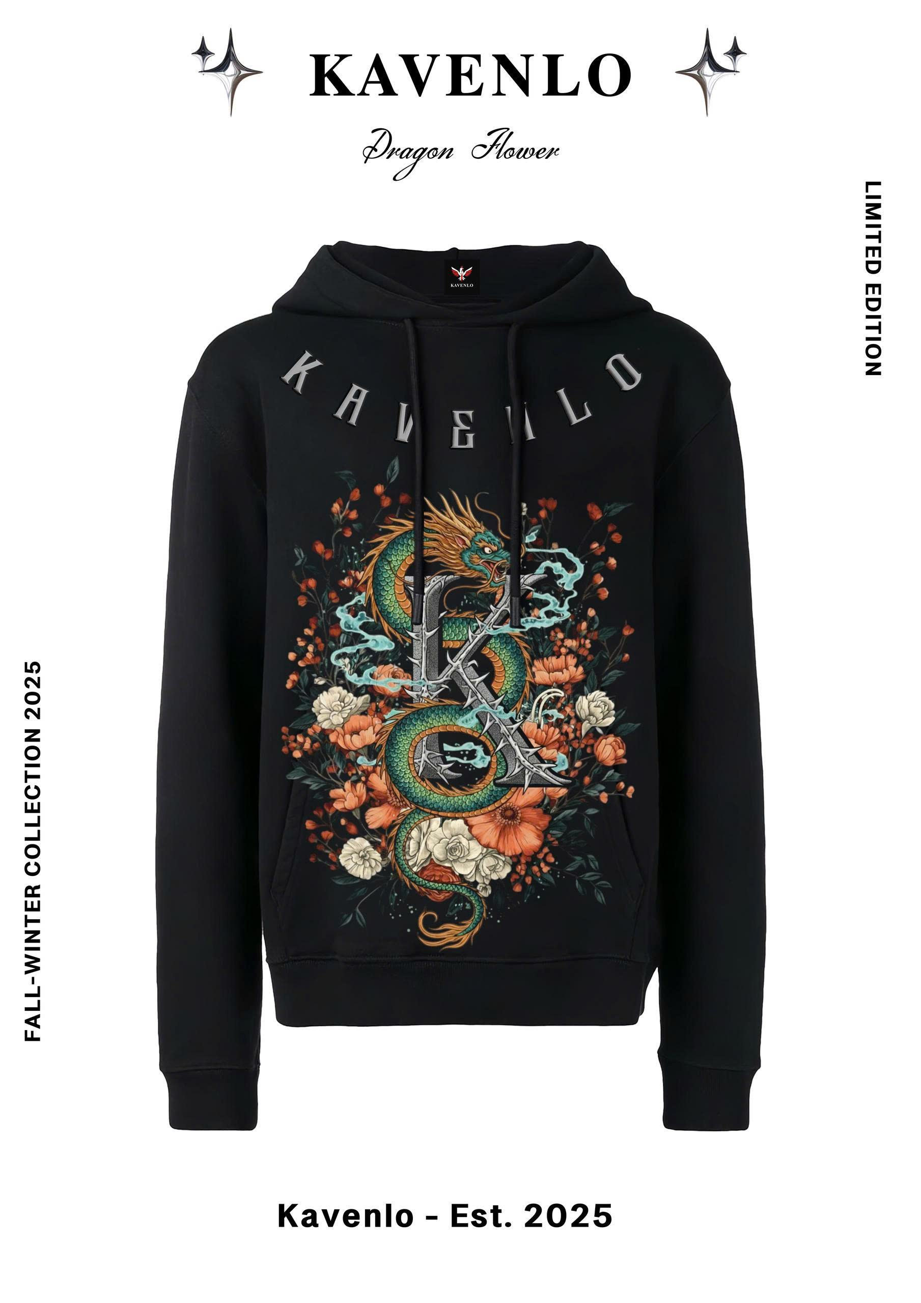 “Dragon Flower” tái hiện hình tượng rồng – biểu tượng cho quyền năng và sự tái sinh – quấn quanh biểu trưng chữ KAVENLO giữa vườn hoa nở rộ. Thiết kế mang thông điệp về sức mạnh nội tại và vẻ đẹp vĩnh hằng, kết hợp tinh thần urban street và nét nghệ thuật Á Đông tinh tế.