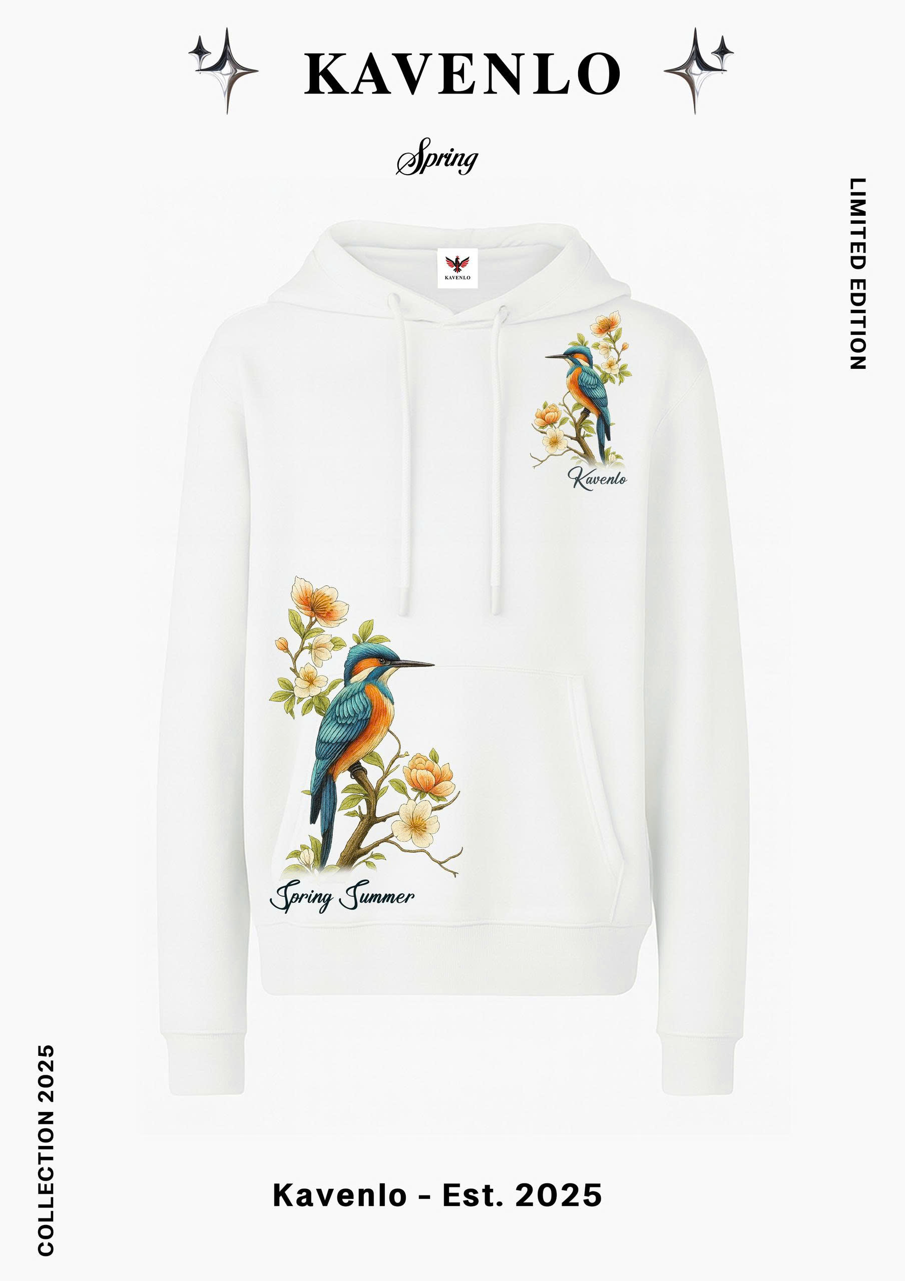 Lấy cảm hứng từ vẻ đẹp thanh thoát của mùa xuân, thiết kế tái hiện chú chim sơn ca bên nhành hoa nở – biểu tượng của khởi đầu mới và sức sống tinh khôi. Gam đen huyền kết hợp sắc cam – xanh – vàng pastel, tạo nên vibe thanh lịch, nhẹ nhàng mà vẫn sang trọng, mang tinh thần artwear tự nhiên đặc trưng KAVENLO.