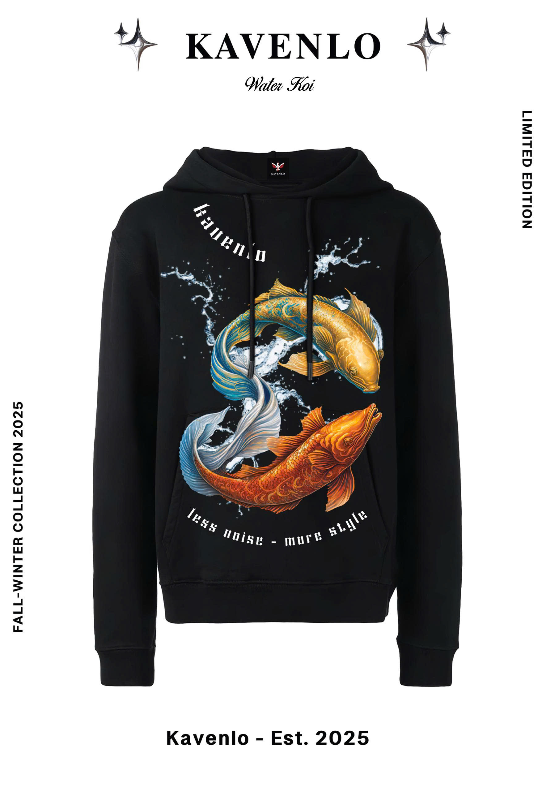 “Water Koi” mang biểu tượng cân bằng giữa tĩnh và động, lấy cảm hứng từ hình ảnh đôi cá chép xoay quanh dòng nước – tượng trưng cho sự kiên định, thịnh vượng và hành trình vượt lên chính mình. Thiết kế hòa quyện nghệ thuật Á Đông với phong cách luxury streetwear hiện đại, tạo nên bản giao hưởng giữa sức mạnh và sự bình yên.