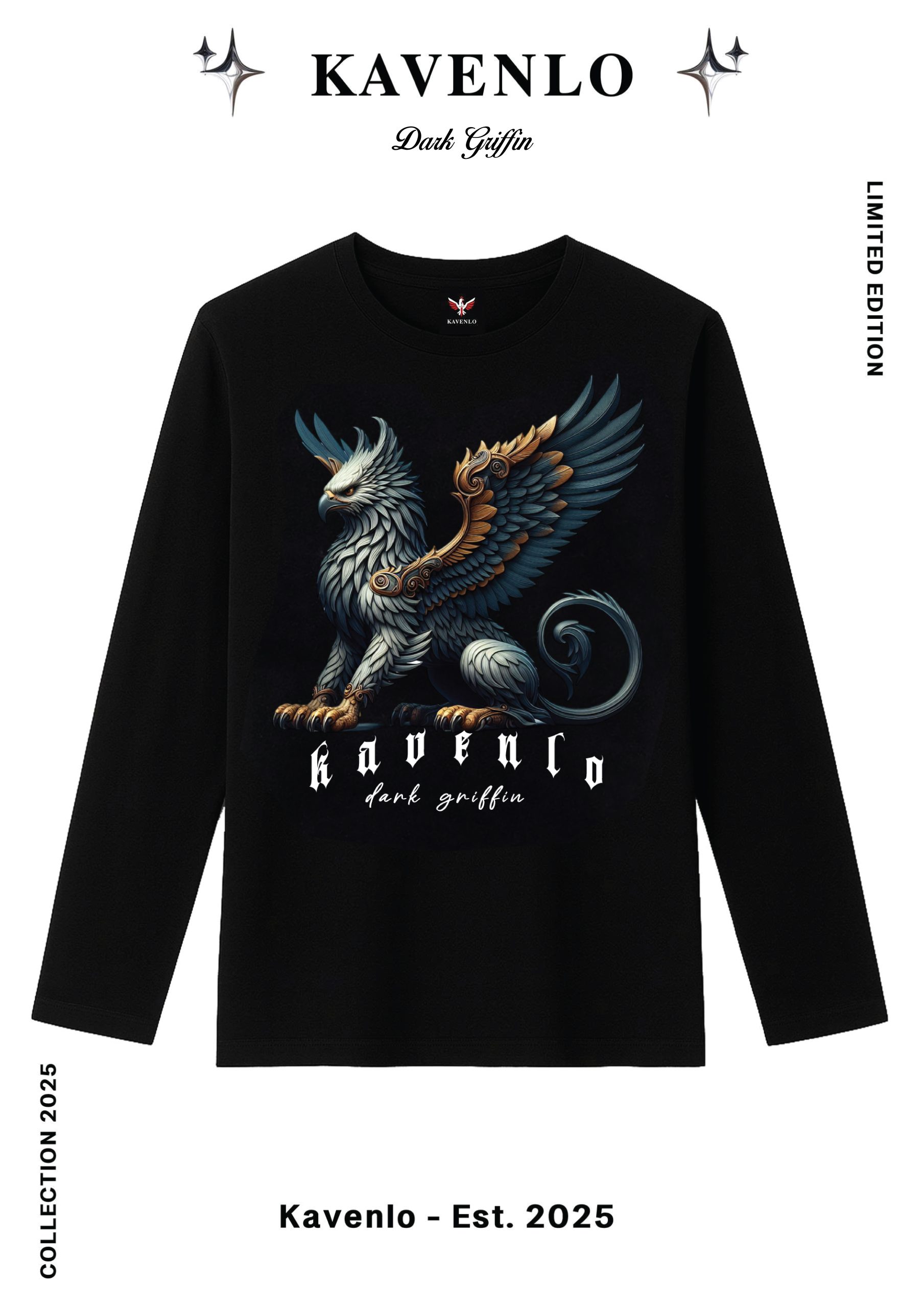 Dark Griffin là biểu tượng của sức mạnh và trí tuệ, sinh vật huyền thoại nửa sư tử – nửa đại bàng, canh giữ kho báu của các vị thần. Thiết kế mang sắc xanh than, xám bạch kim và ánh đồng kim loại, thể hiện vẻ đẹp cổ điển pha hiện đại, như lời tôn vinh dành cho nghệ thuật phương Tây thời kỳ Gothic. Đôi cánh vươn rộng tượng trưng cho tự do và tầm nhìn xa, trong khi thân hình mạnh mẽ khắc họa quyền lực và sự trung thành tuyệt đối. Từng chi tiết trên áo được xử lý như một bức tranh huyền thoại — vừa trầm mặc, vừa uy nghi, mang tinh thần "Less Noise – More Style" mà KAVENLO luôn theo đuổi: không phô trương, chỉ tỏa sáng bằng bản lĩnh và khí chất.