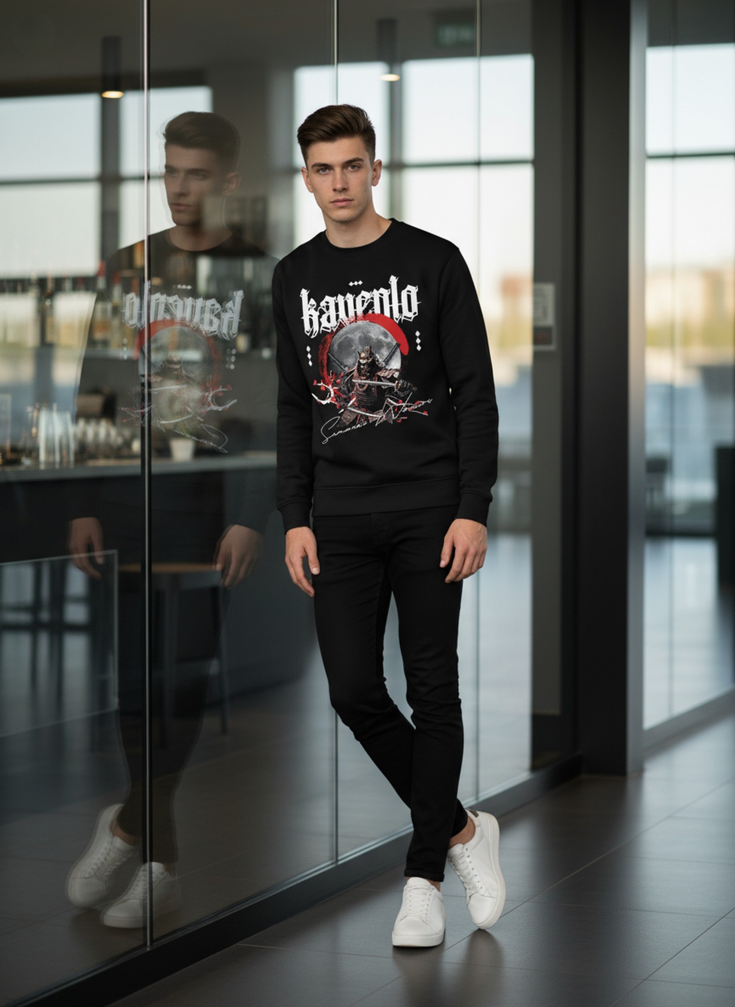 Samurai Warrior tôn vinh hình ảnh chiến binh huyền thoại Nhật Bản – biểu tượng của danh dự, kỷ luật và tinh thần chiến đấu bất khuất. Thiết kế tái hiện khoảnh khắc samurai dưới ánh trăng tròn, với vòng tròn đỏ của mặt trời – biểu trưng cho sức mạnh, lòng trung thành và sự cân bằng giữa tĩnh và động. Gam màu đen – đỏ – bạc kết hợp cùng phông chữ gothic mạnh mẽ mang đến vẻ ngoài quyền lực, đậm chất chiến binh nhưng vẫn hiện đại và thời trang. Thông điệp “Less Noise – More Style” được thể hiện trọn vẹn: vẻ đẹp thật sự đến từ sự tự chủ và bản lĩnh trong từng hành động, không cần lời nói.