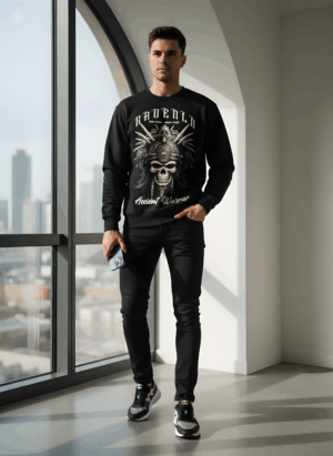 Ancient Warrior là lời tri ân dành cho những chiến binh bất tử trong huyền thoại cổ đại, những linh hồn mang trong mình khát vọng bất diệt và sức mạnh không khuất phục. Biểu tượng đầu lâu đội vương miện chiến thần, đan xen cùng kim loại, gai nhọn và hắc bảo thạch, tạo nên hình ảnh vừa uy nghi, vừa huyền bí – như một vị vua bóng tối cai trị qua từng thế kỷ. Bảng màu chủ đạo đen – xám bạc – đỏ huyết ngọc mang lại cảm giác cổ kính, quyền lực và đậm chất gothic, phản chiếu tinh thần heritage luxury mà KAVENLO đang tái định nghĩa. Đây không chỉ là một thiết kế thời trang, mà là một biểu tượng của sức mạnh vượt thời gian, khắc họa câu chuyện của những người chiến đấu trong im lặng, chiến thắng bằng phong thái. Triết lý “Less Noise – More Style” được thể hiện trọn vẹn – bản lĩnh thật sự không cần gào thét, chỉ cần hiện diện.