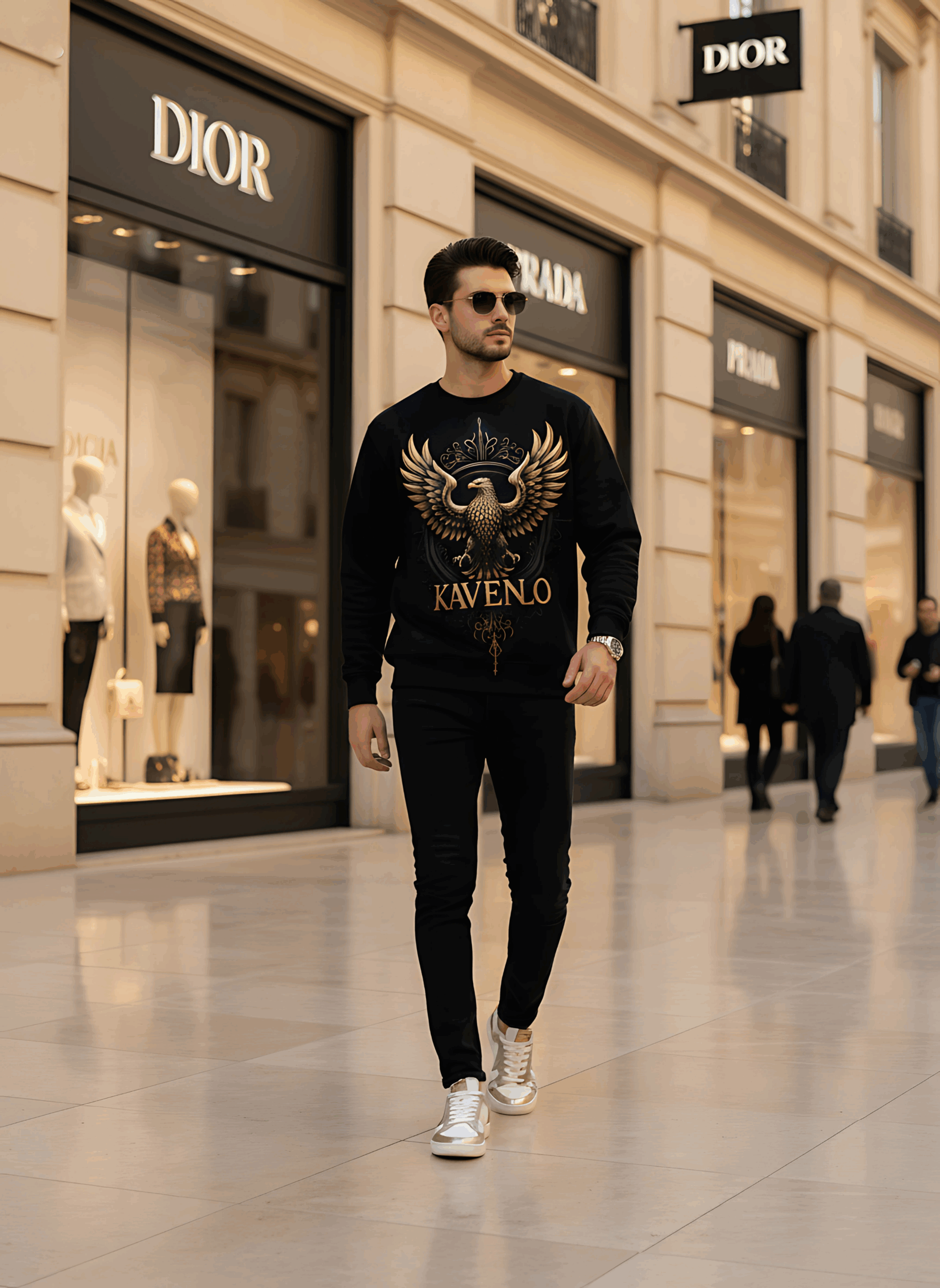 Lấy cảm hứng từ đại bàng – biểu tượng của tự do và quyền lực tối thượng, Eagle thể hiện tinh thần bay cao vượt giới hạn và khát vọng chinh phục. Đôi cánh vàng ánh kim mở rộng trong ánh sáng đen huyền tạo nên vẻ mạnh mẽ, sang trọng và bất khuất. Thiết kế gửi gắm thông điệp “Rise Above All” – hãy vươn lên, làm chủ bầu trời của chính mình.