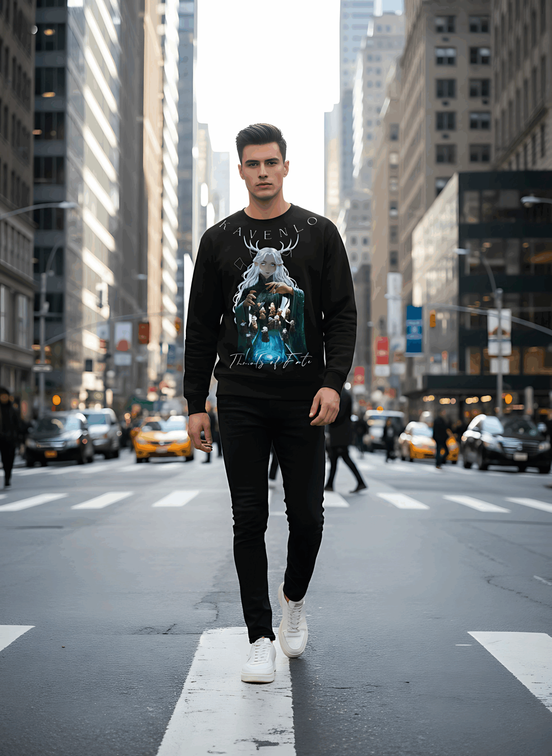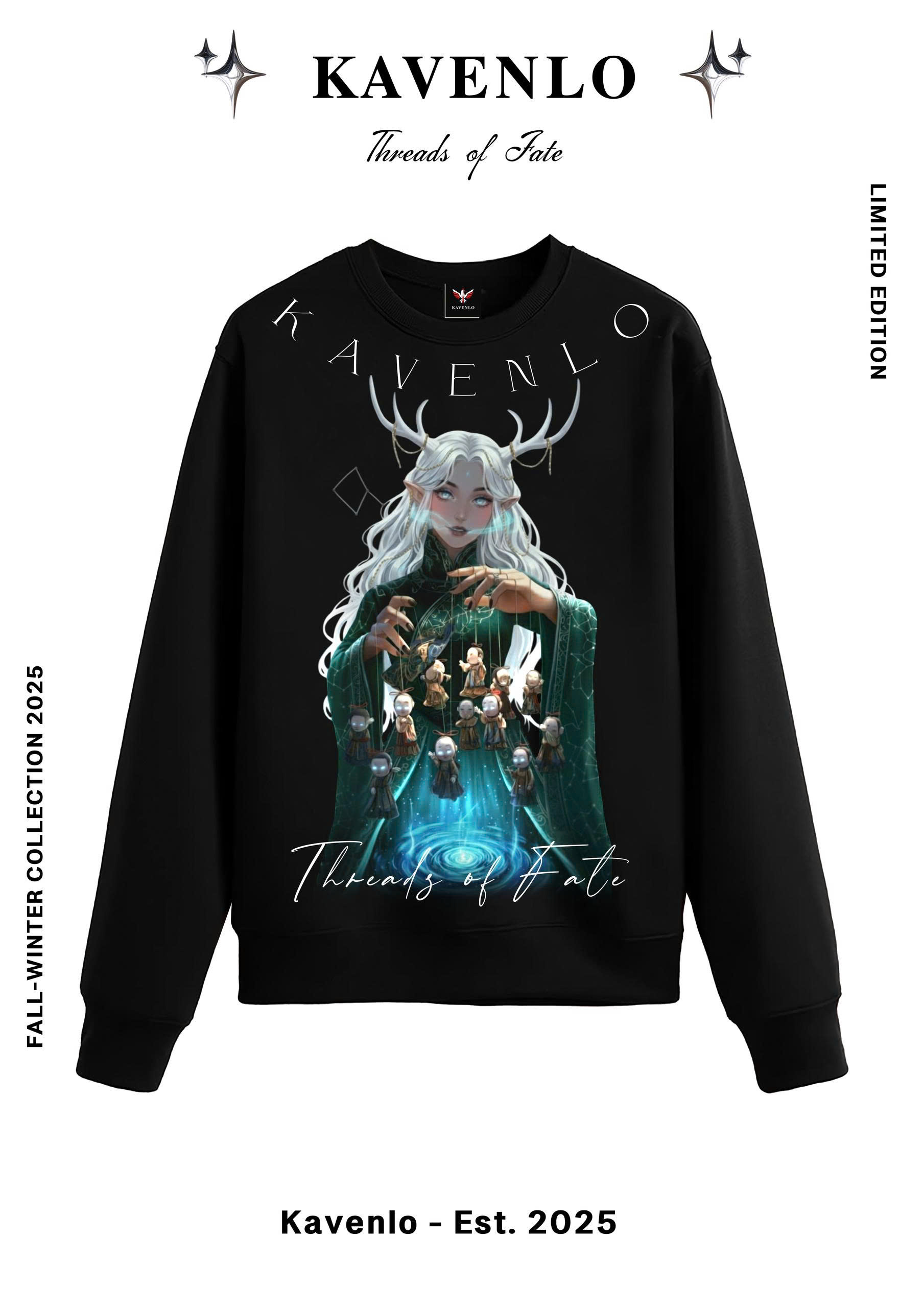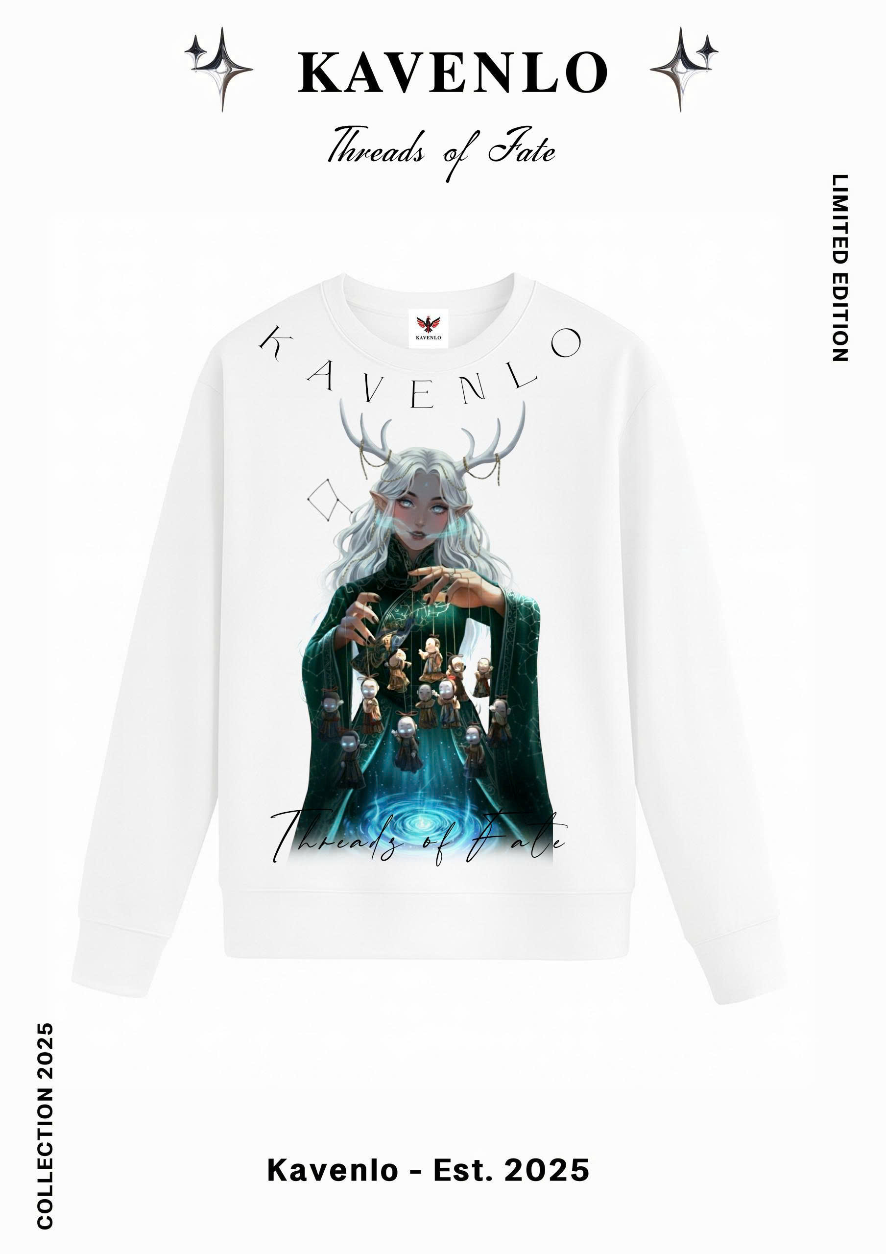 Lấy cảm hứng từ truyền thuyết về những sợi chỉ định mệnh, Threads of Fate khắc họa hình ảnh nữ thần điều khiển vận mệnh – người dệt nên từng đường chỉ của số phận. Mái tóc bạch kim, đôi mắt ánh xanh và vòng xoáy năng lượng tượng trưng cho sự kết nối giữa con người và vũ trụ. Thiết kế truyền tải thông điệp “We weave our own destiny” – mỗi người đều là kẻ nắm giữ sợi chỉ cuộc đời mình